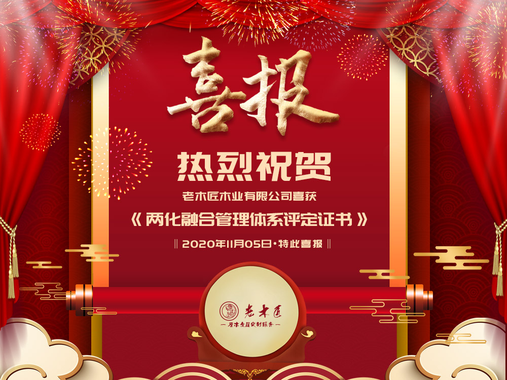 11月05日,老木匠木業(yè)有限公司順利通過國(guó)家工業(yè)和信息化部《信息化和工業(yè)化融合管理體系要求》(GB/T 23001-2017)體系認(rèn)證,喜獲《兩化融合管理體系評(píng)定證書》,標(biāo)志著公司在推進(jìn)信息化...